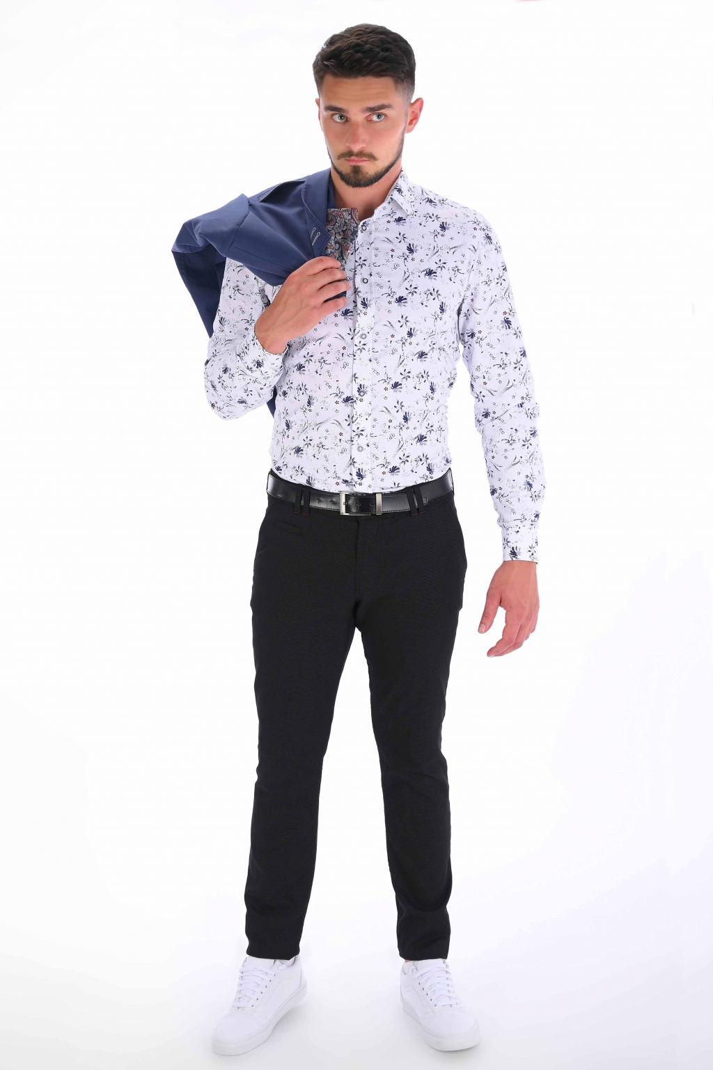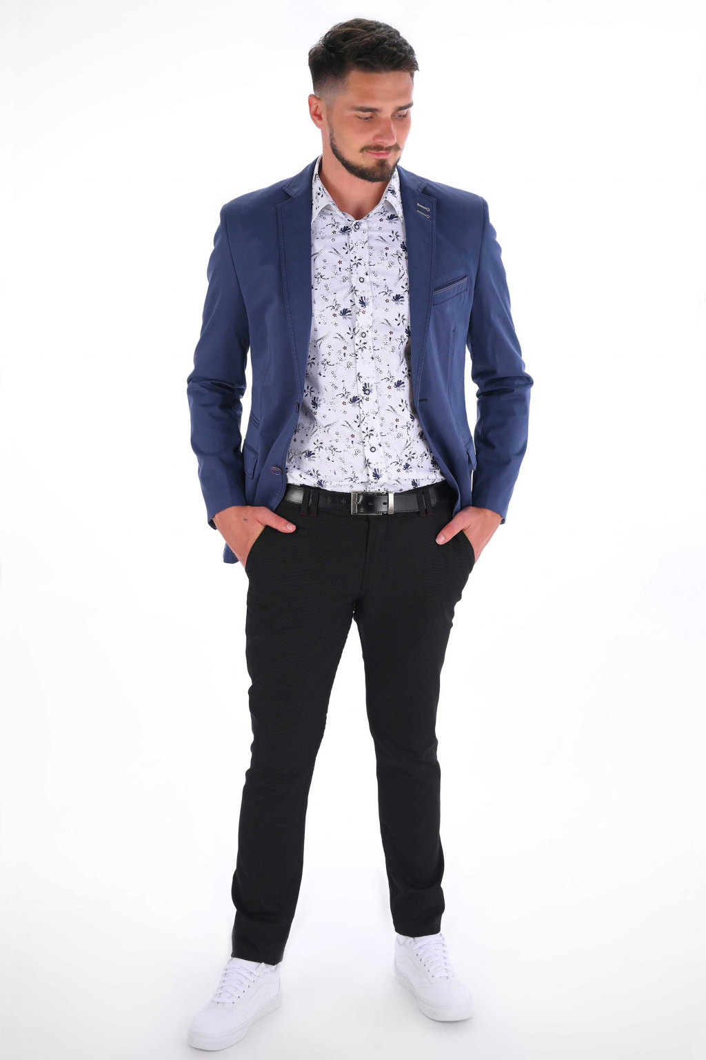 Čierne nohavice s mikrovzorom Chinos ULTRA SLIM, bavlna stretch