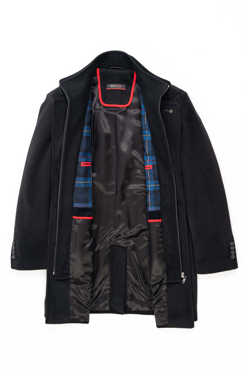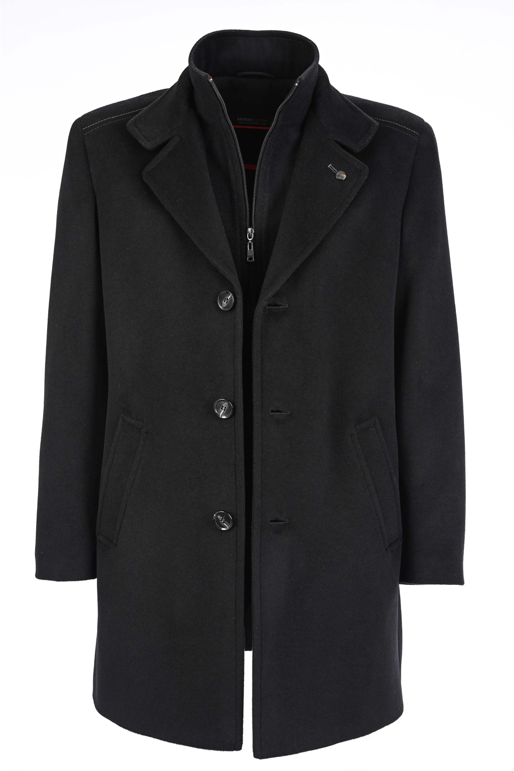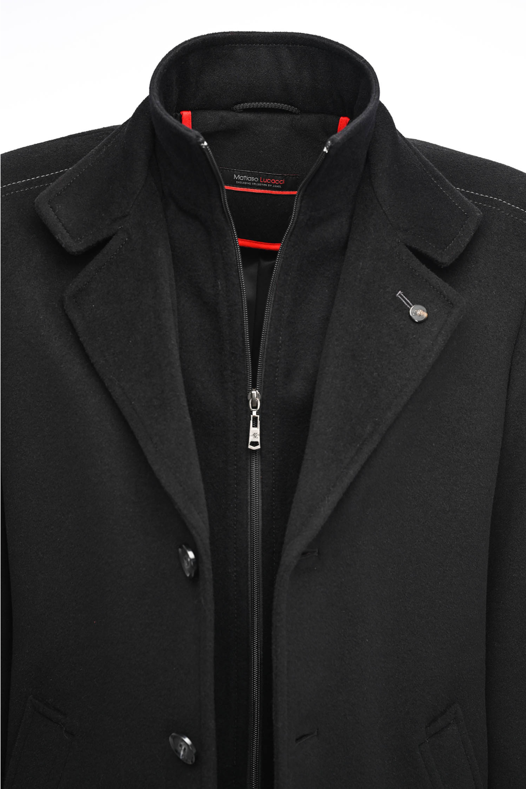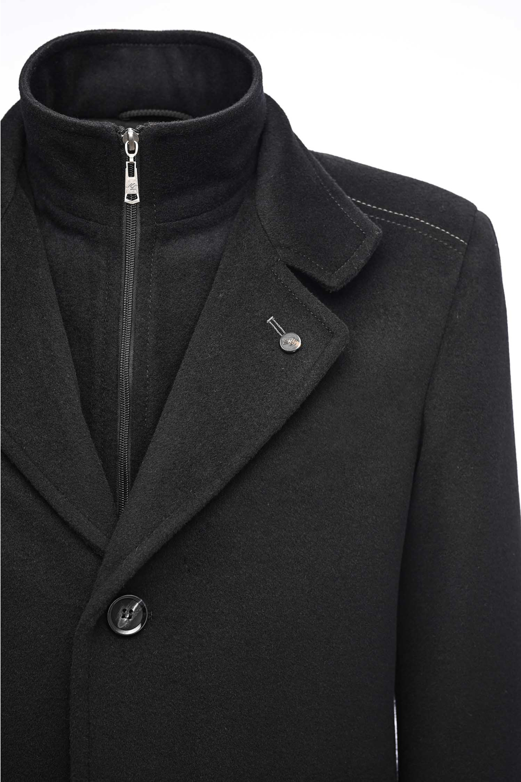 Elegantný vlnený kabát so stojačikovým golierom na zips SLIM STRIH