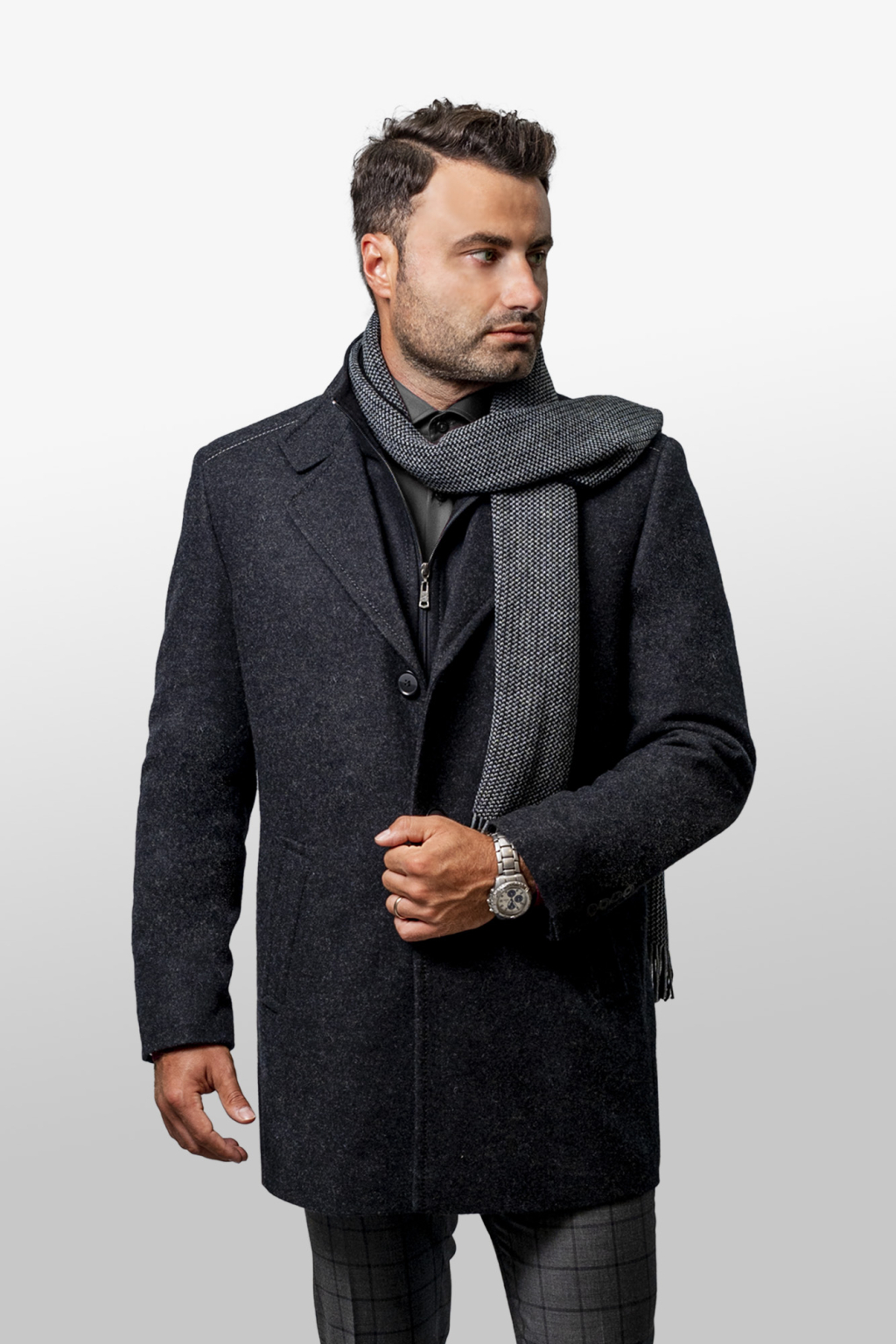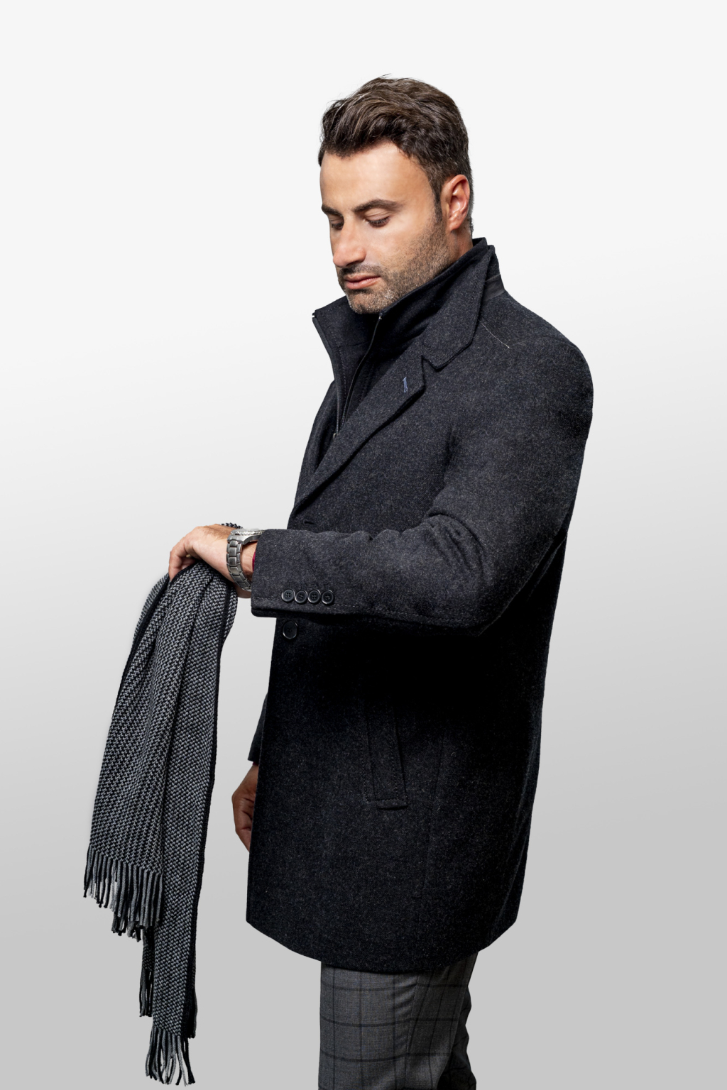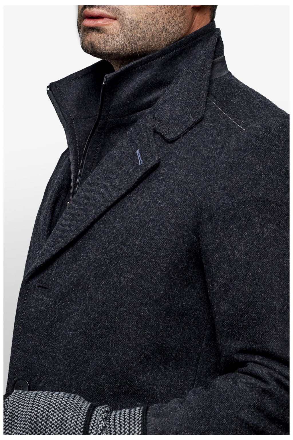 Krátky vlnený kabát s odopínateľným golierom na zips SLIM STRIH