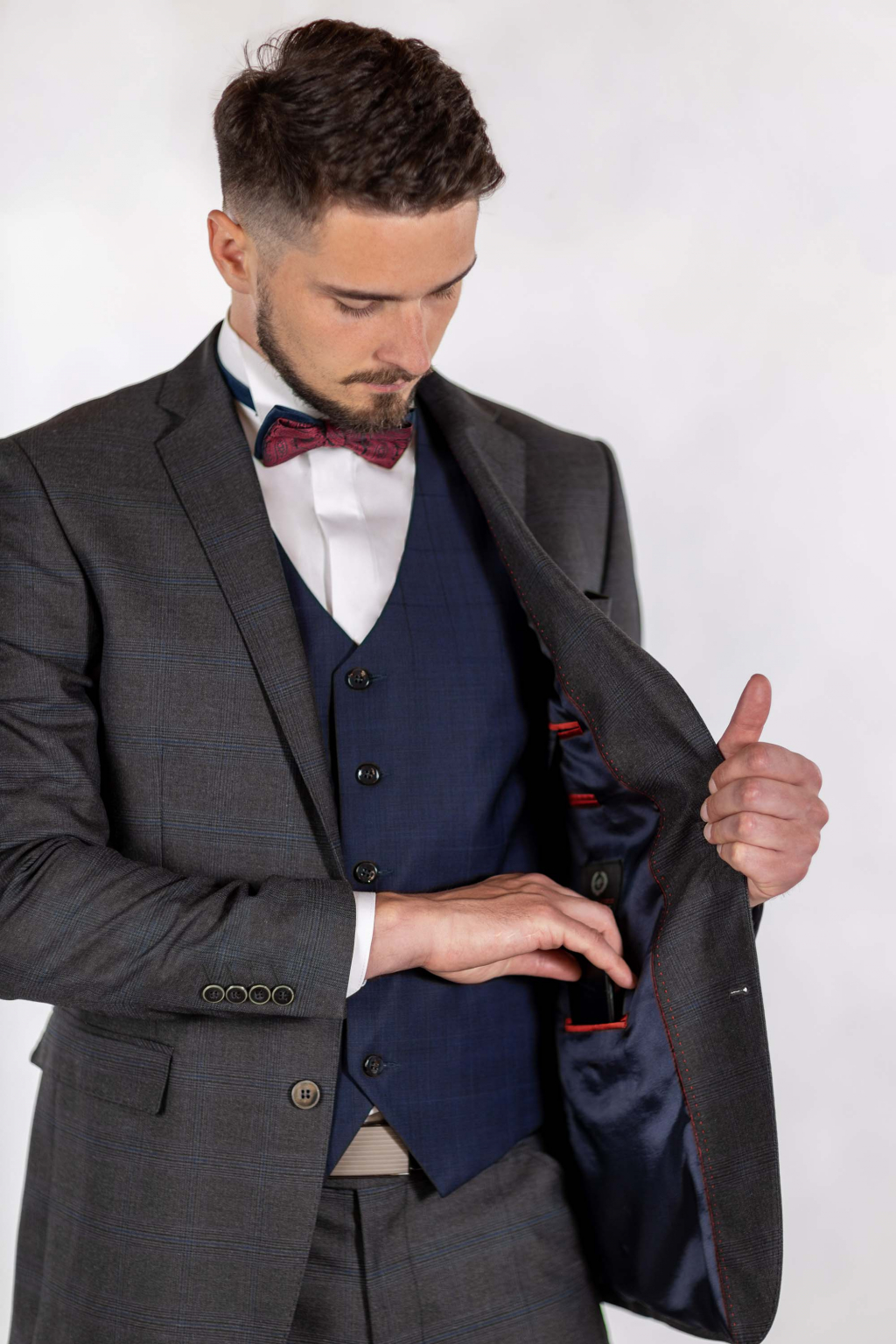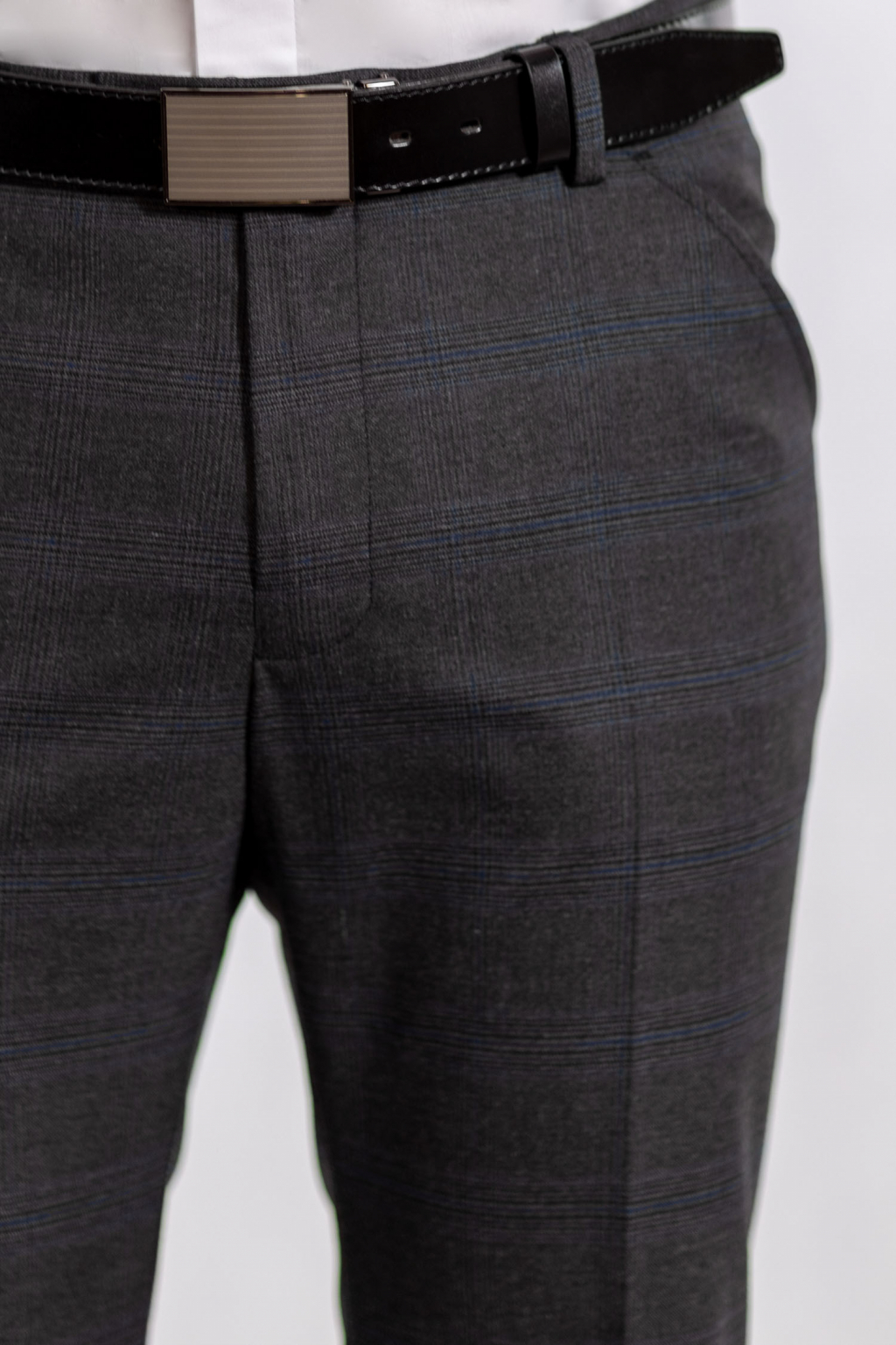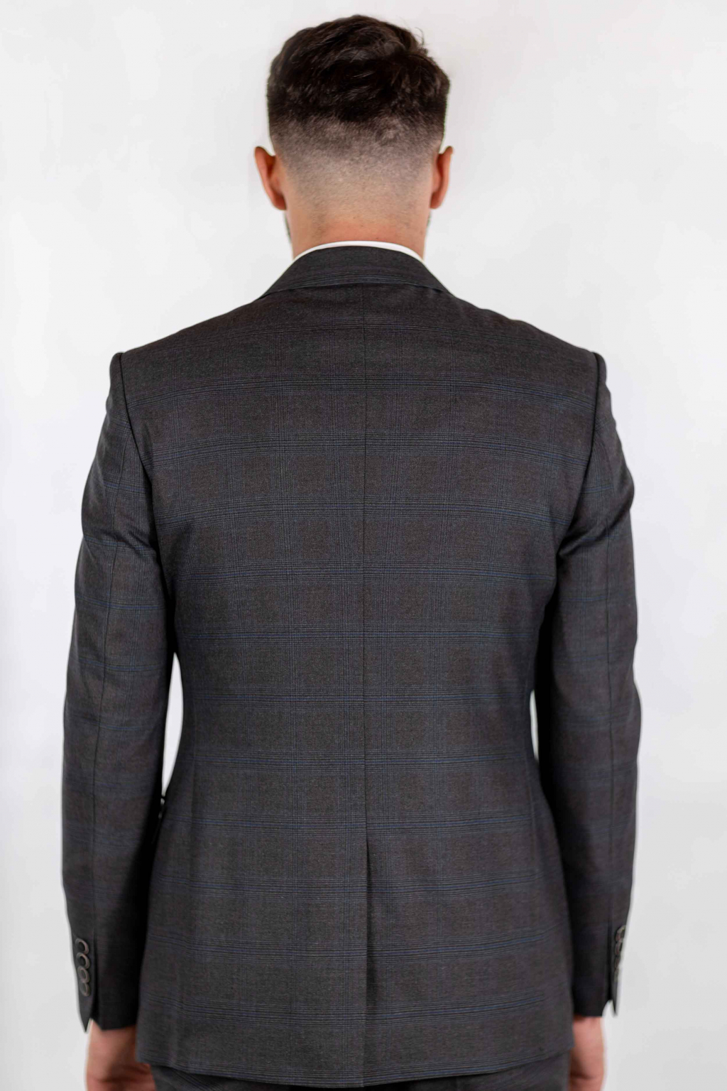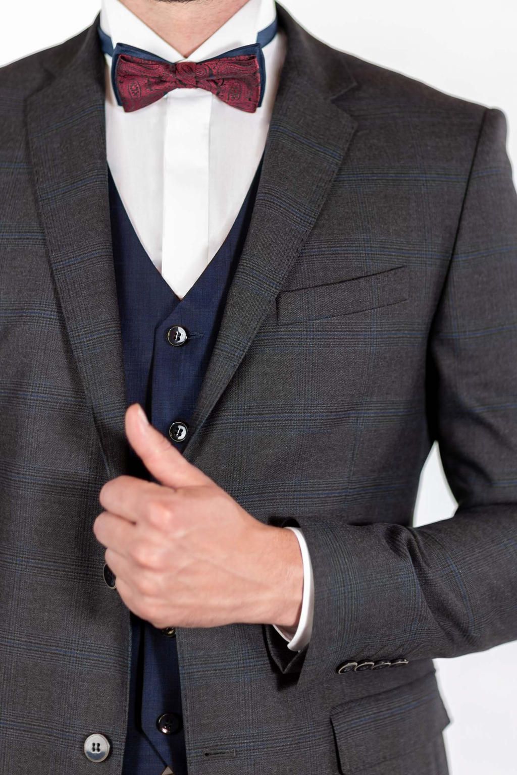 Károvaný oblek šedej farby SLIM STRIH, klasický