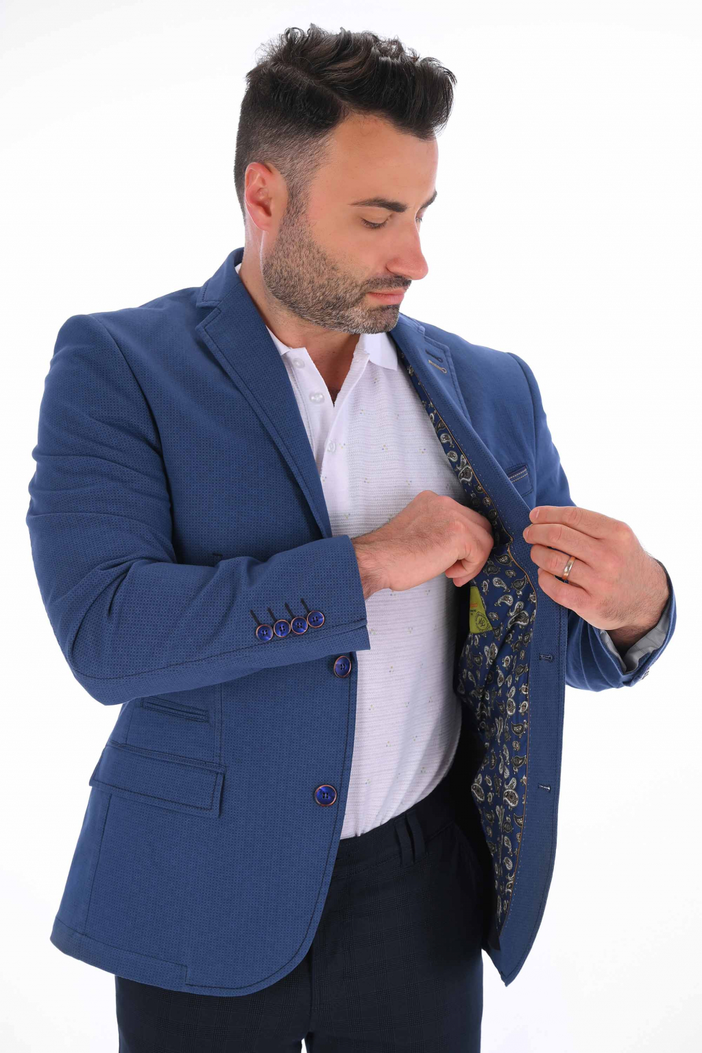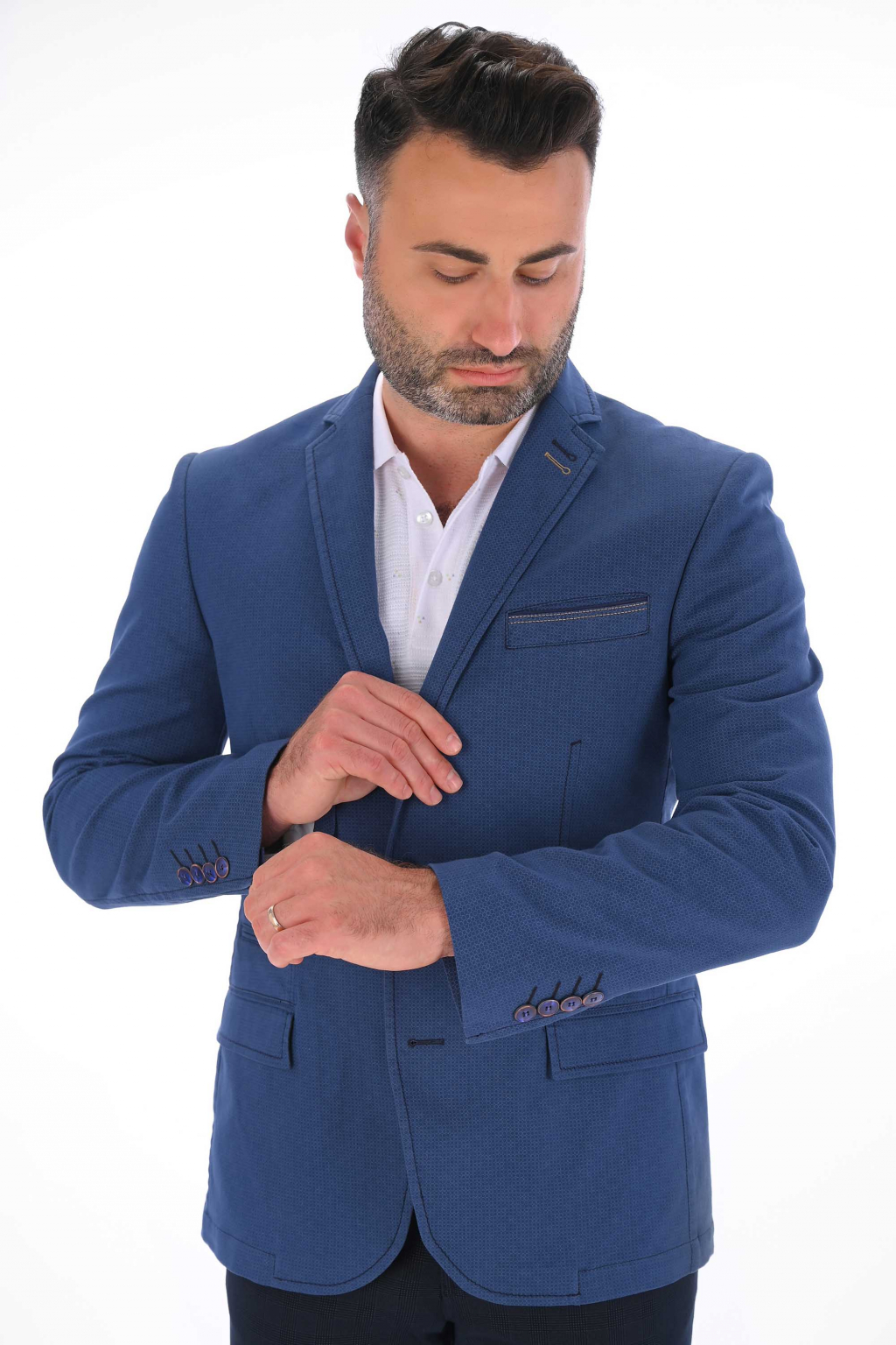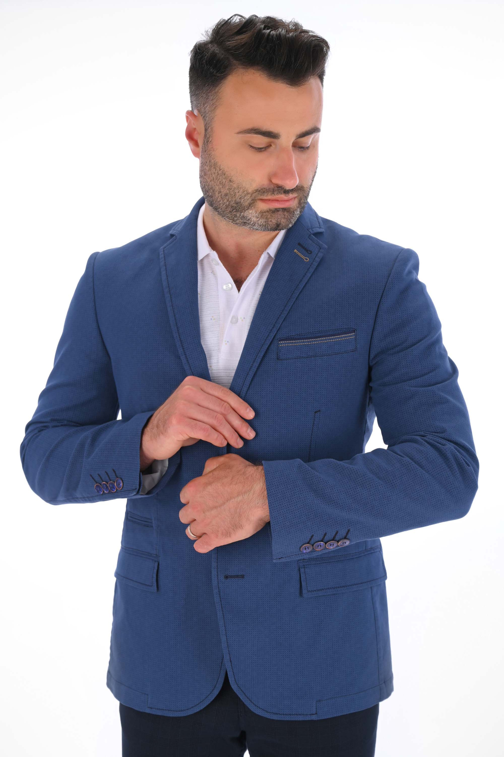 Modré sako s jemným vzorom SLIM STRIH, bavlna stretch