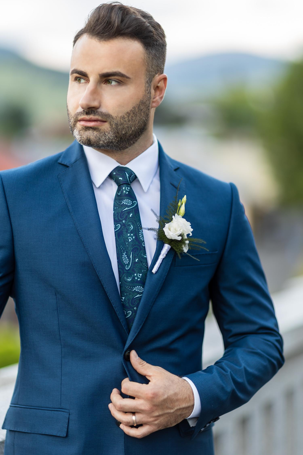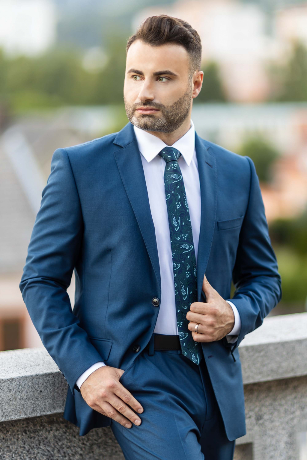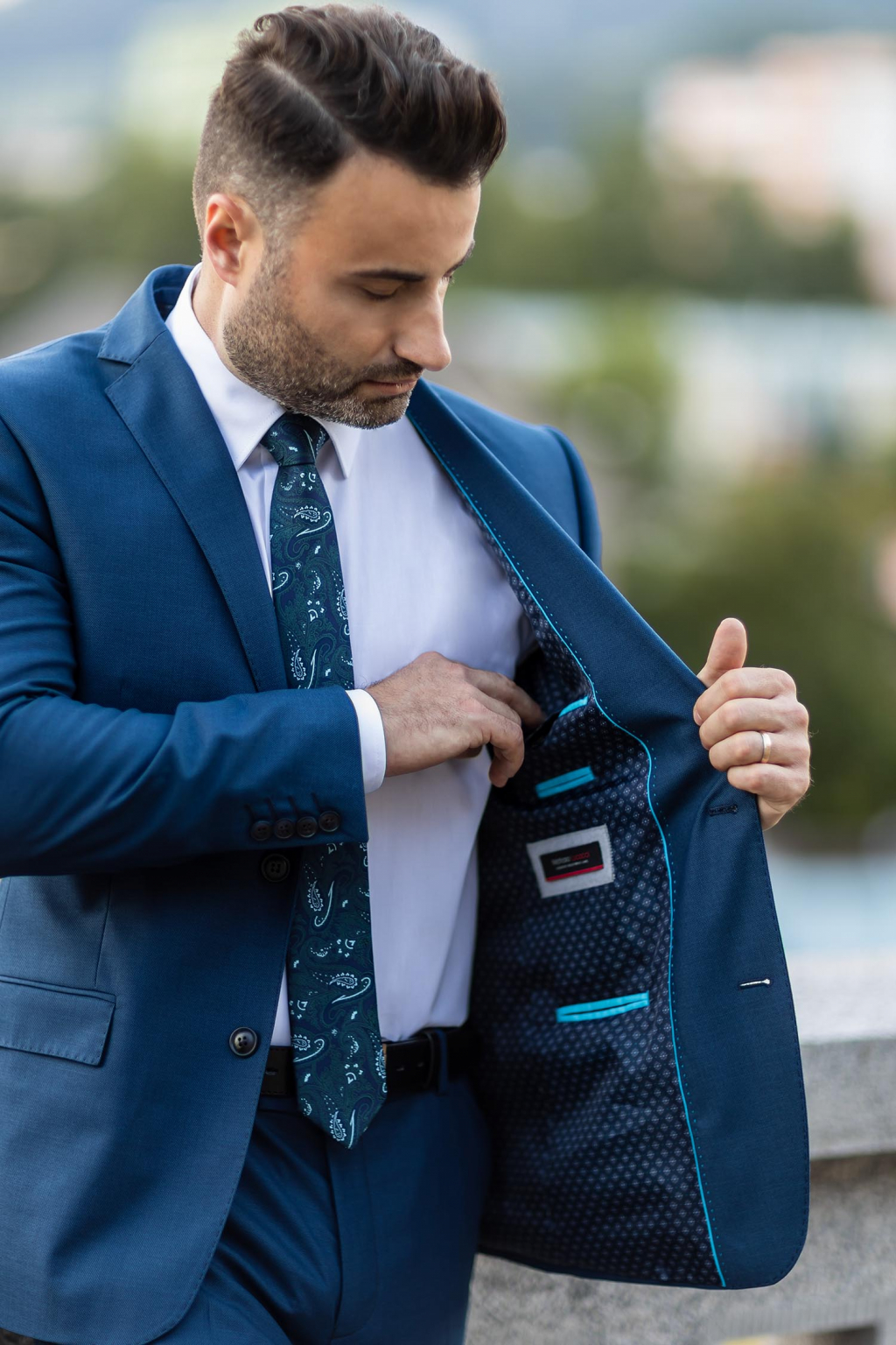Modro-tyrkysový oblek SLIM STRIH, klasický