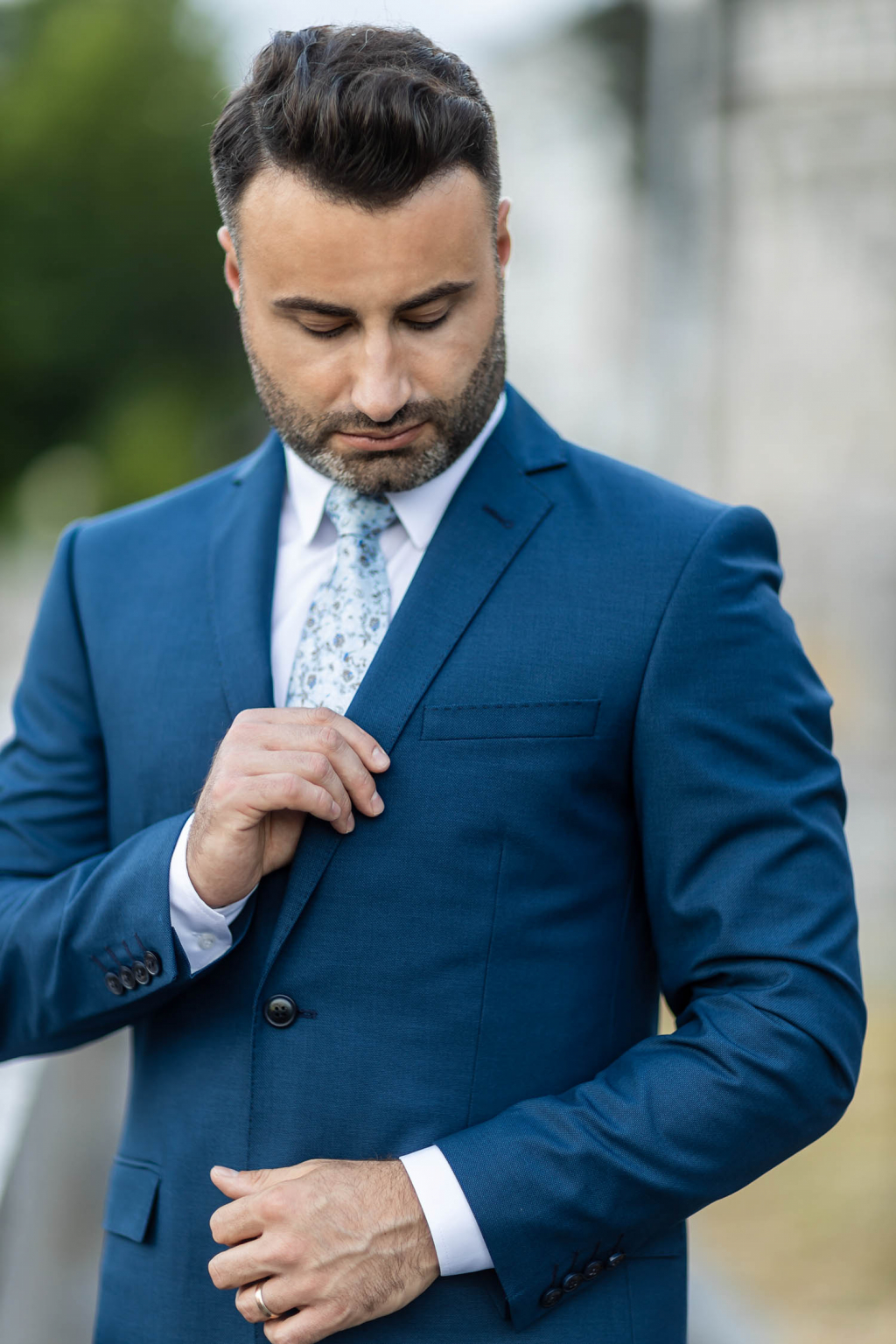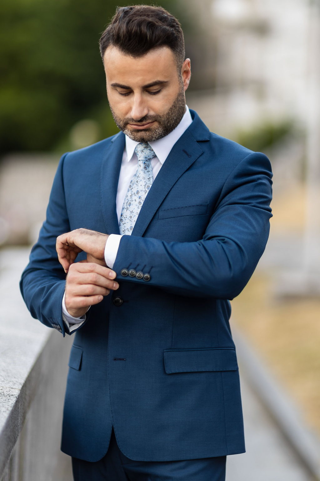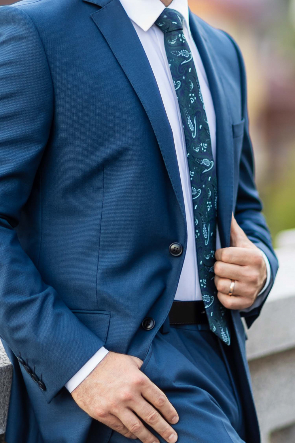 Modro-tyrkysový oblek SLIM STRIH, klasický