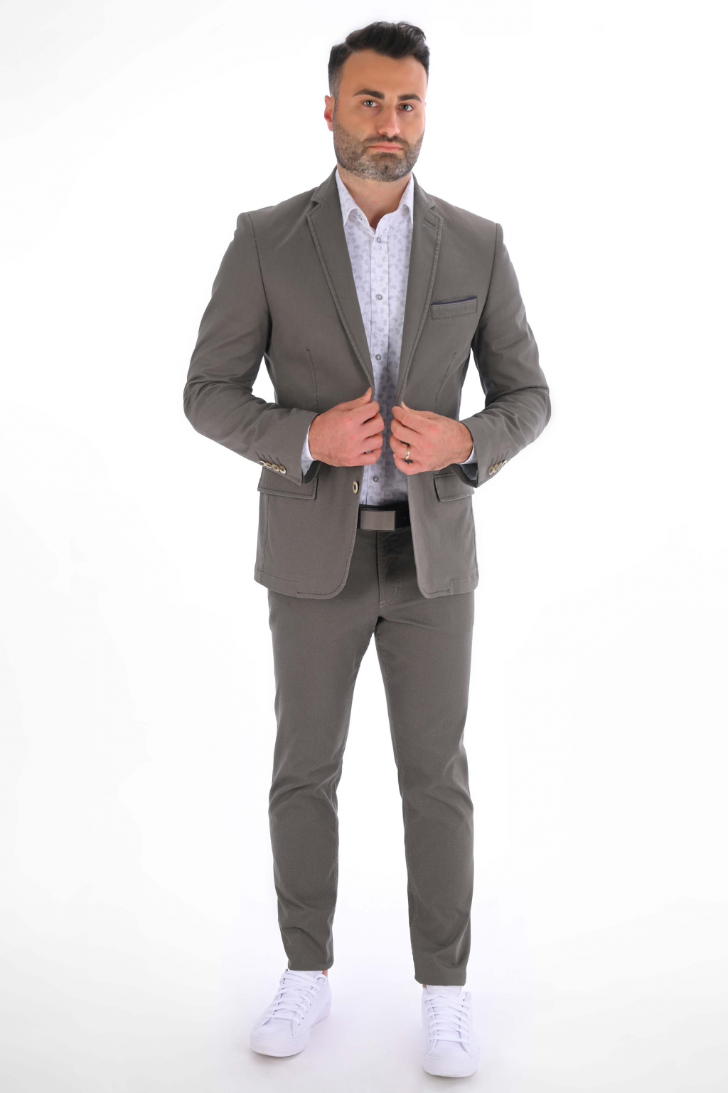 Šedé nohavice s mikrovzorom Chinos ULTRA SLIM, bavlna stretch
