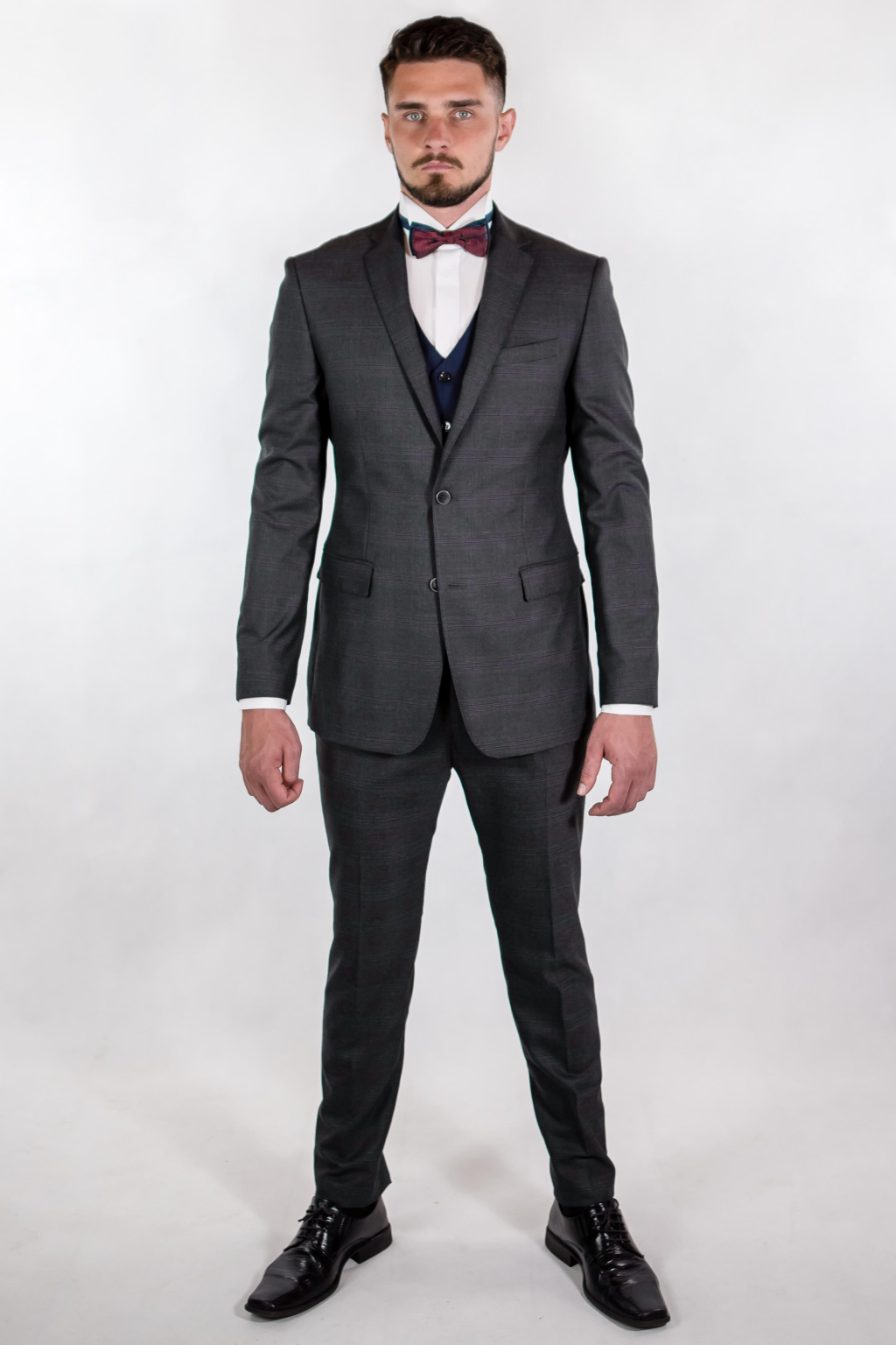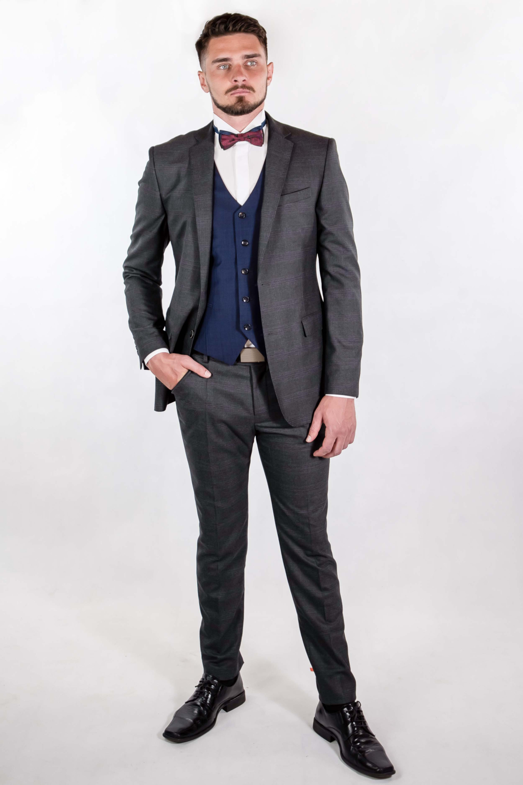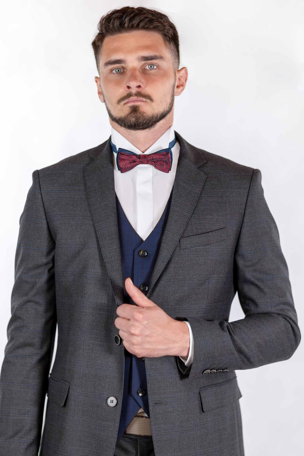 Tmavomodrá vesta s jemným károm SLIM strih, klasická