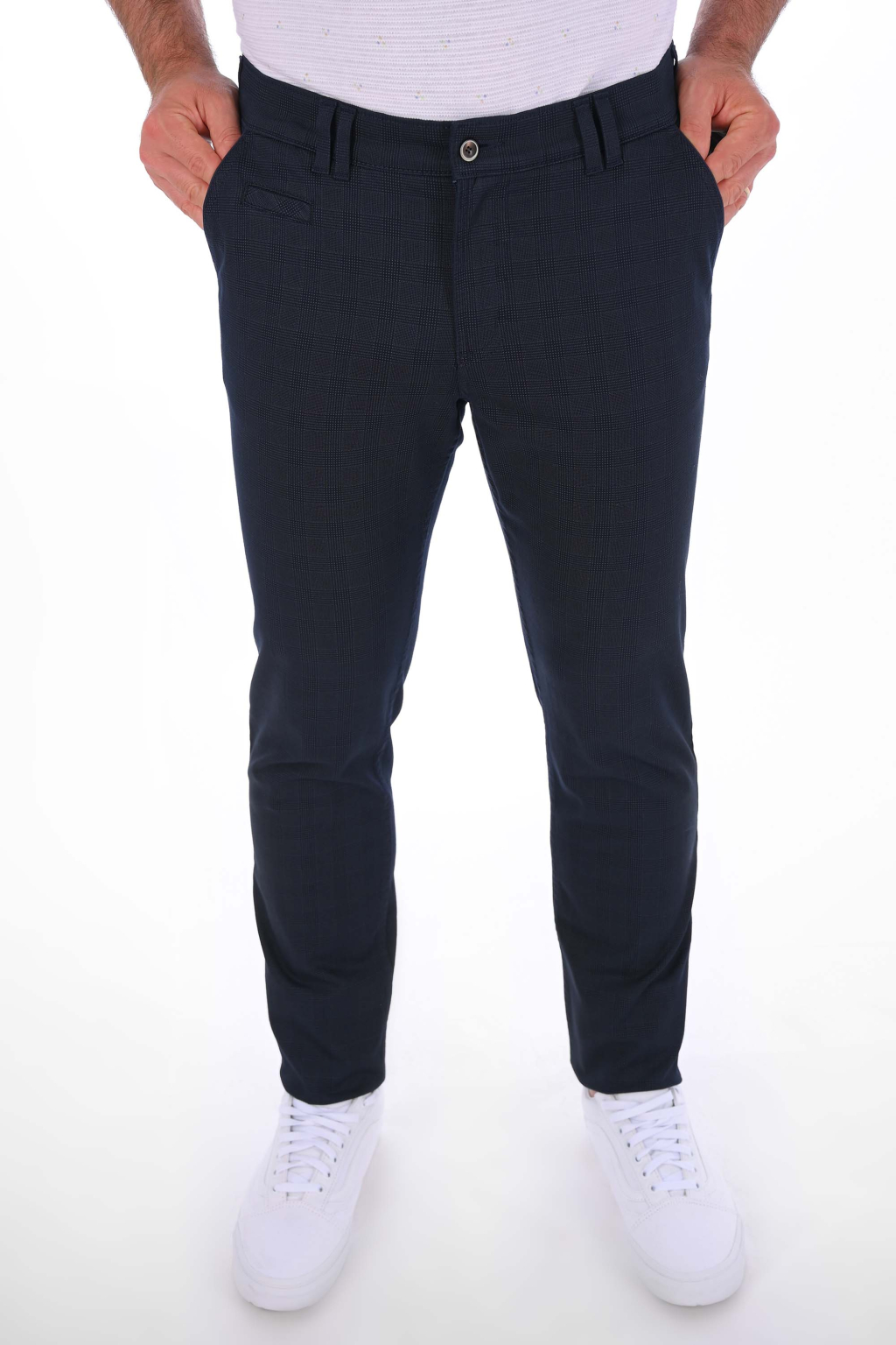 Tmavomodré nohavice -Káro Chinos ULTRA SLIM, bavlna stretch
