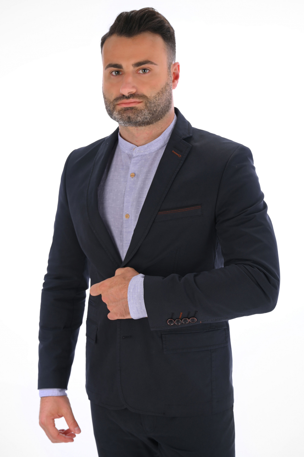 Tmavošedé sako SLIM STRIH, bavlna stretch