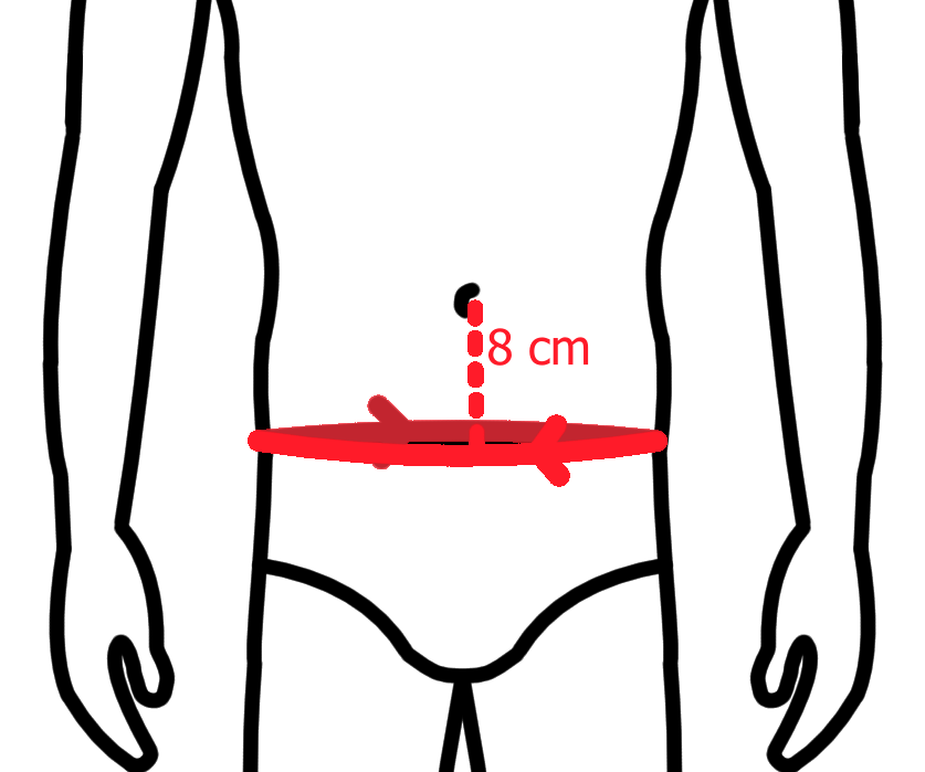Merať obvod pásu 8cm pod pupkom.